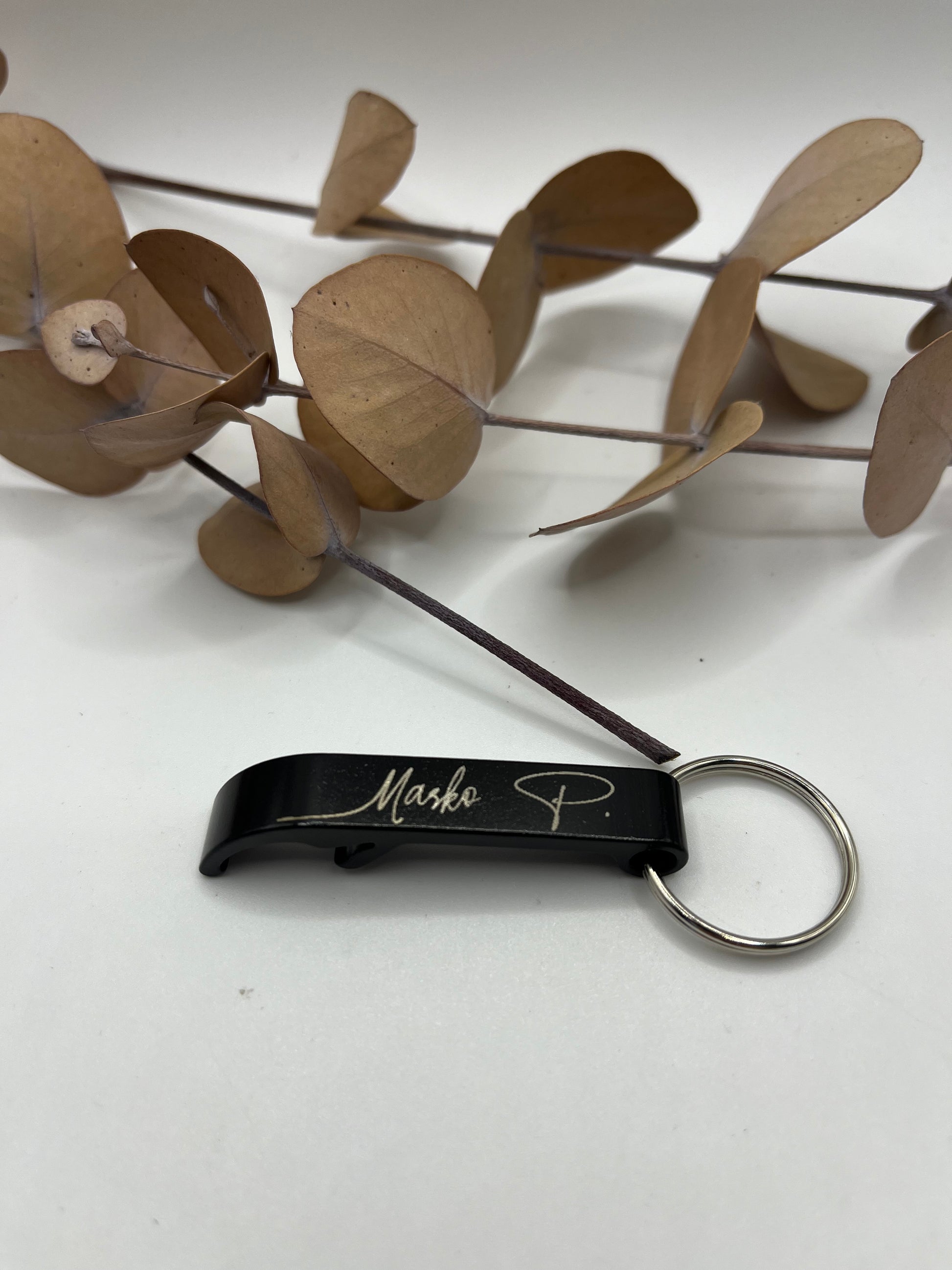 Das eingravierte Logo von Marko P. verleiht dem Flaschenöffner eine persönliche Note und macht ihn zum idealen Accessoire für wahre Fans. Egal, ob Sie ihn selbst verwenden oder als Geschenk für einen Freund – dieser Flaschenöffner wird garantiert zum Hingucker.