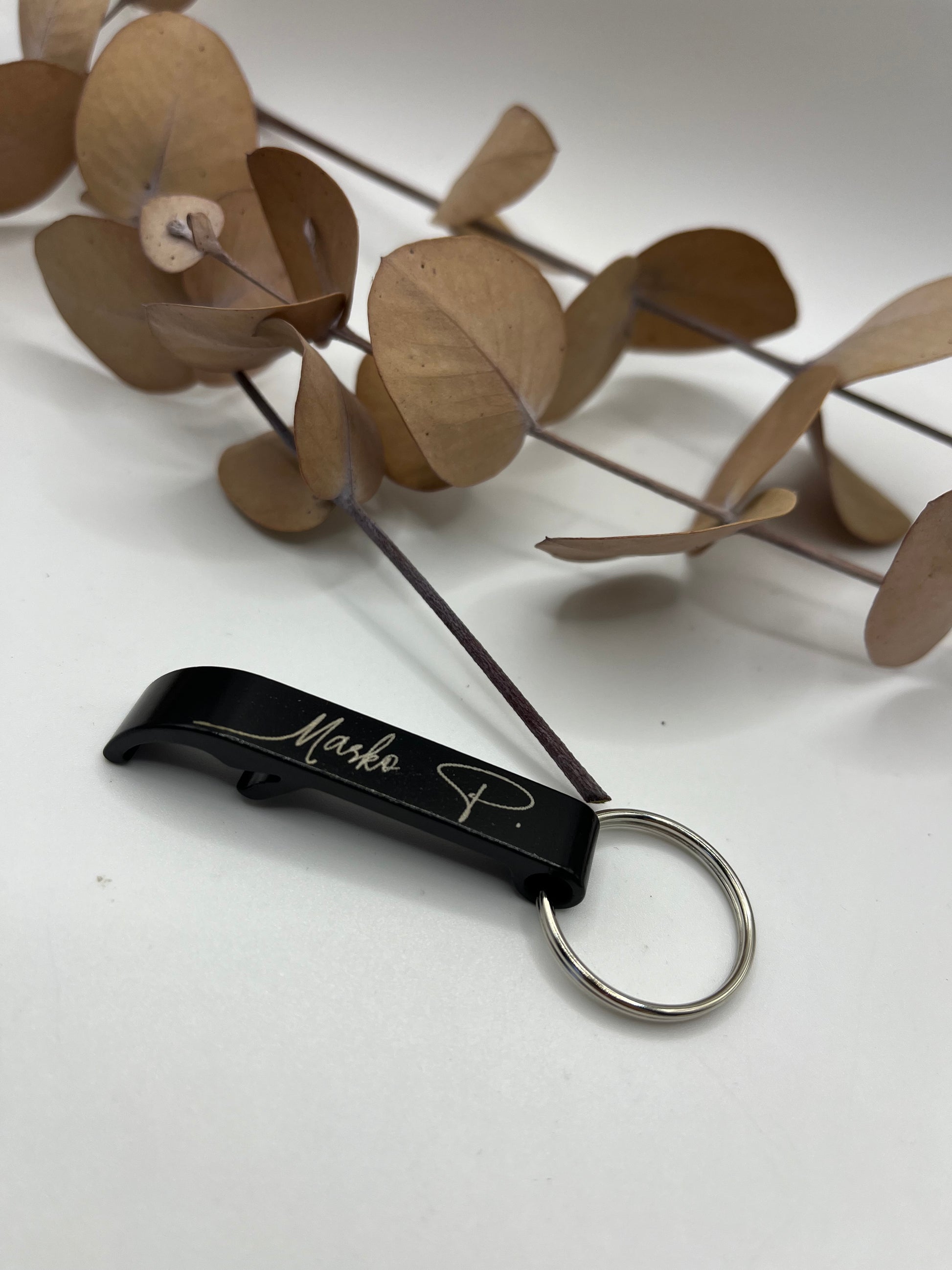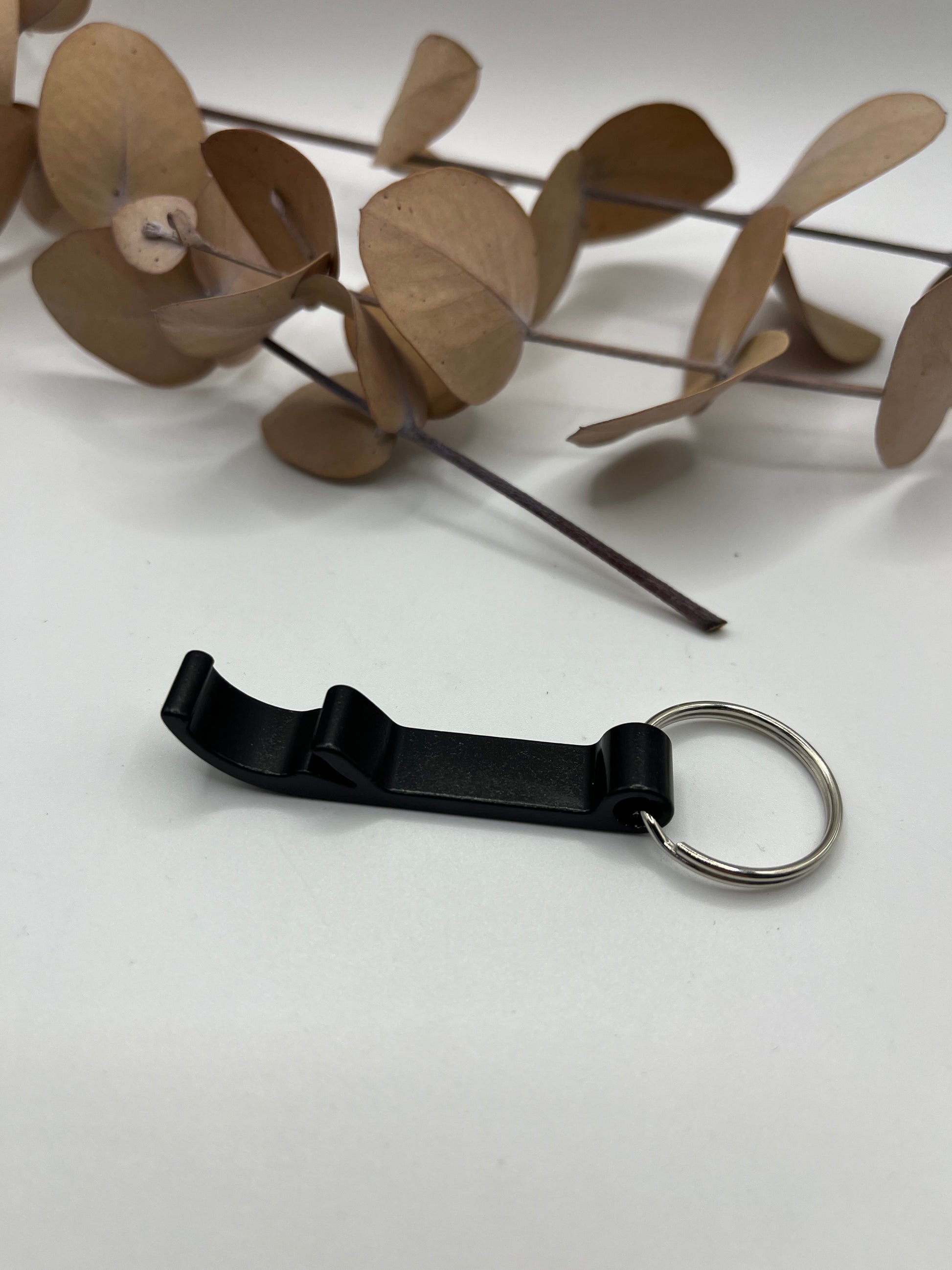 Unser eleganter Flaschenöffner ist aus hochwertigem, langlebigem Aluminium gefertigt und kommt in einem eleganten schwarzen Finish. Mit einer kompakten Größe von 11 x 60 x 15 mm passt er perfekt an Ihren Schlüsselbund und sorgt immer dafür, dass Sie für jeden bereit sind