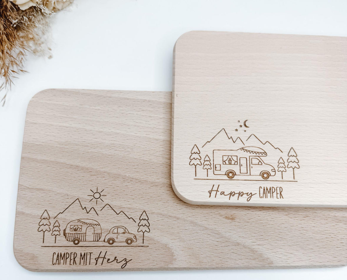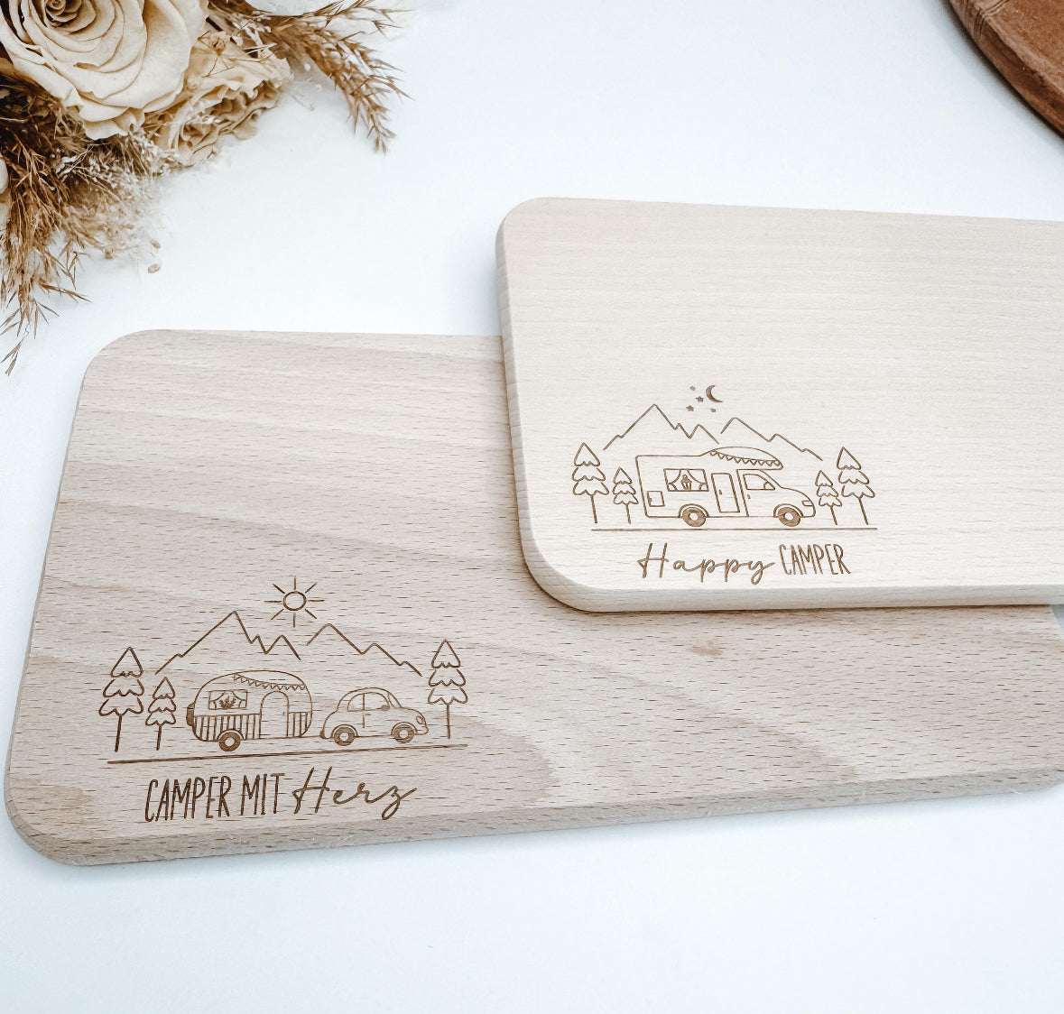 Ob im Wohnmobil, Caravan oder auf dem heimischen Frühstückstisch – mit diesen liebevoll gravierten Holzbrettern bringst du echtes Camper-Feeling direkt auf den Tisch!