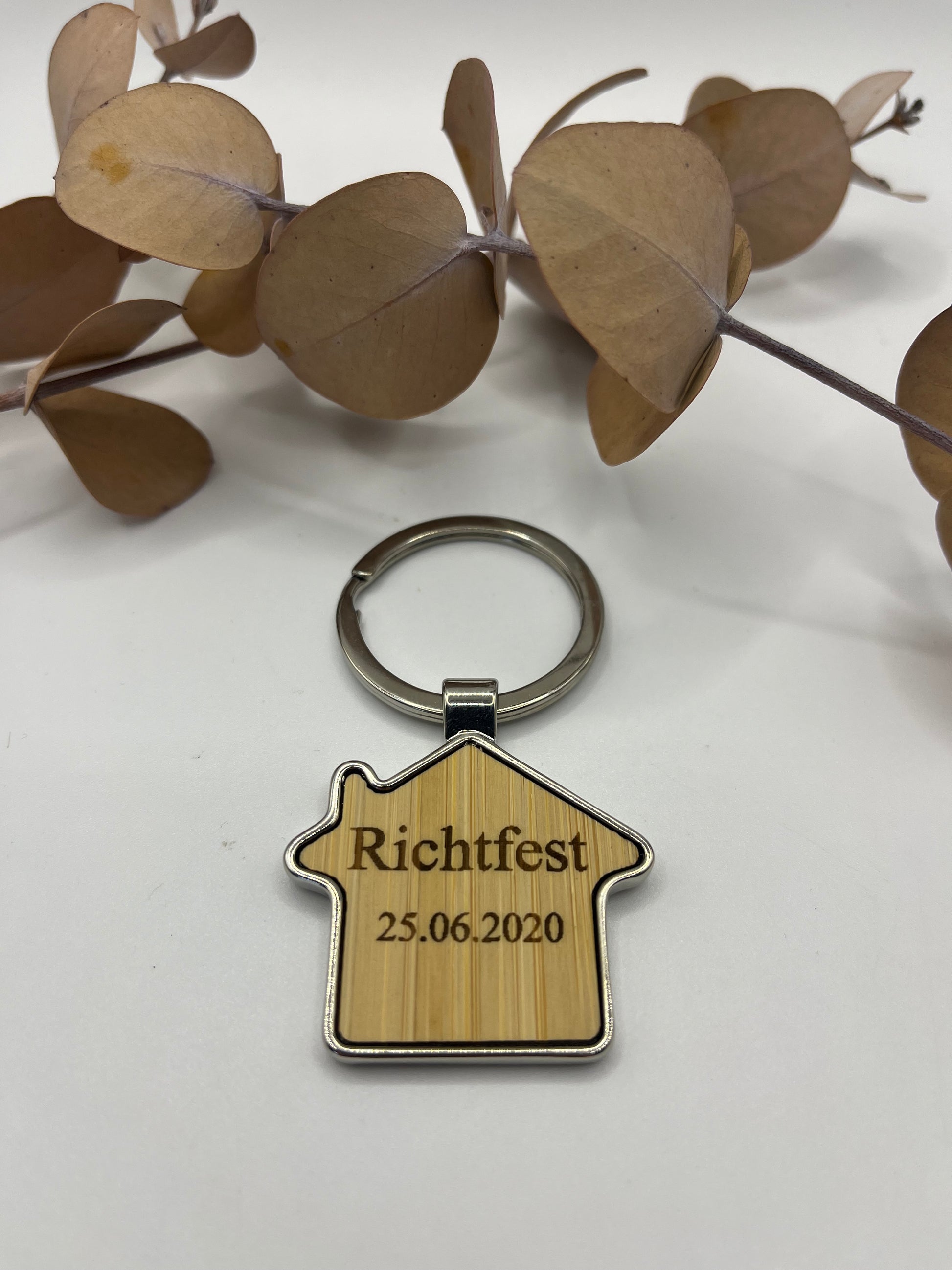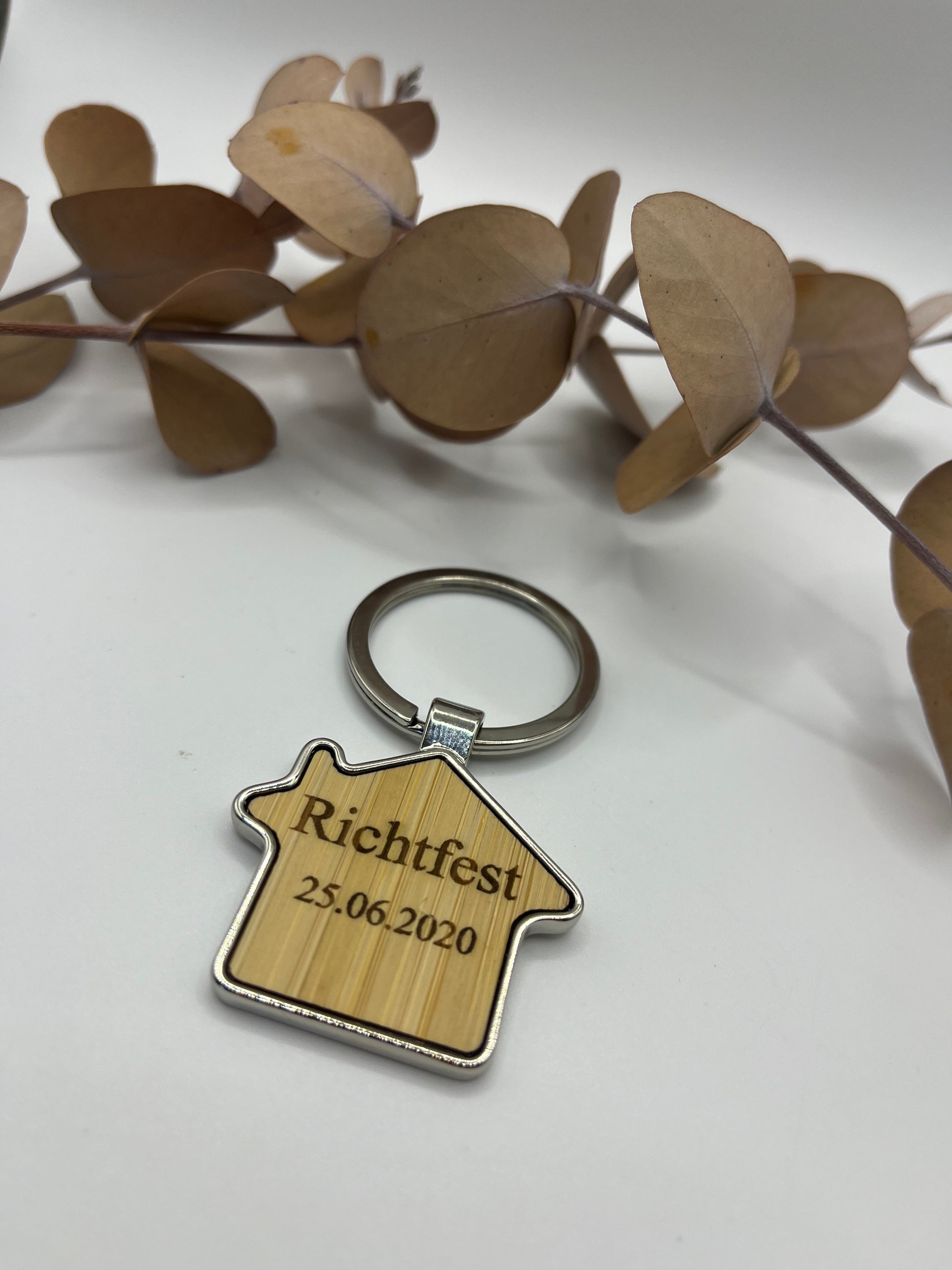 Einzigartiger Personalisierter Bambus Haus Schlüsselanhänger