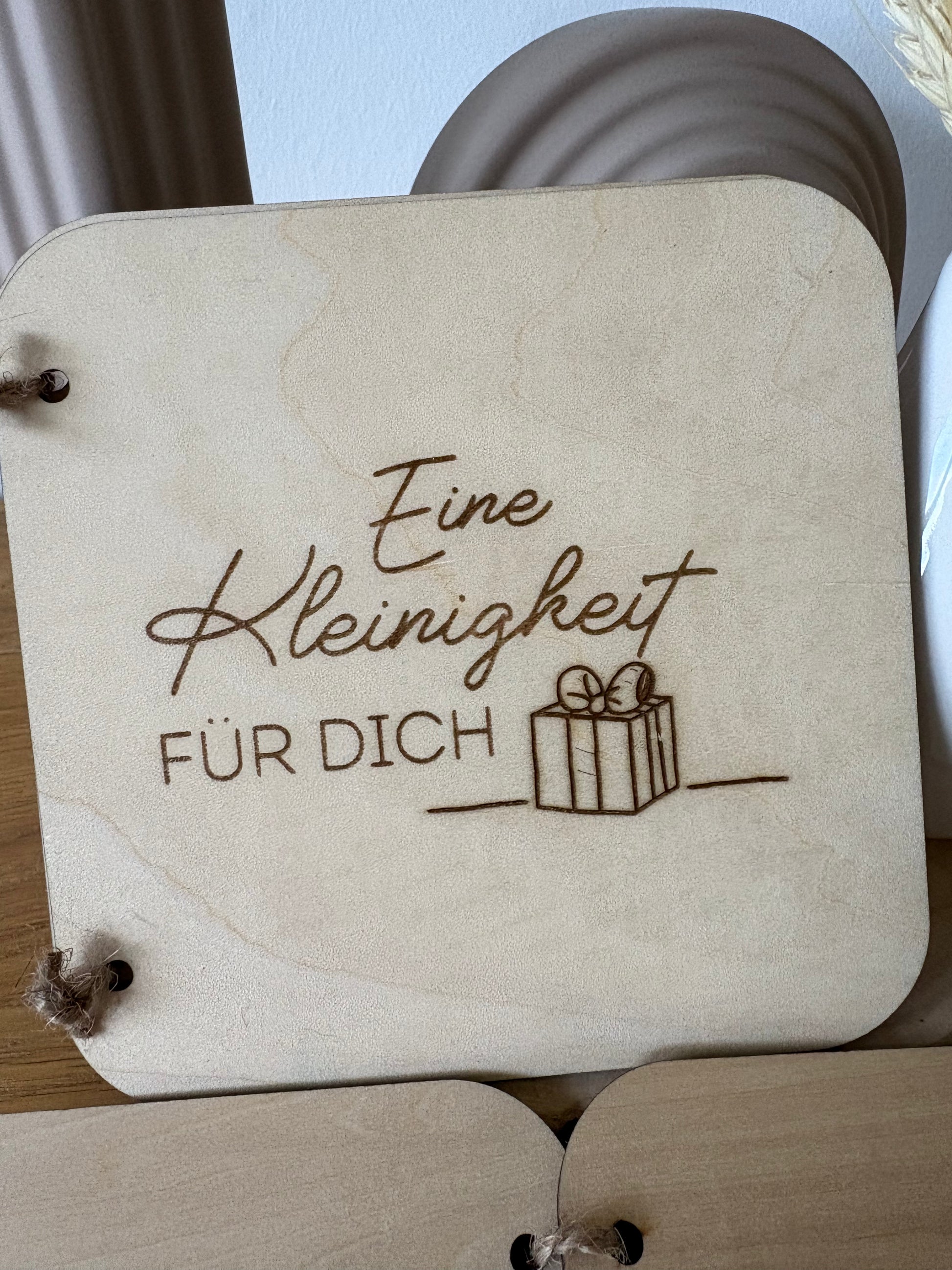 - Vorderseite: „Eine Kleinigkeit für dich“ mit Geschenkgravur