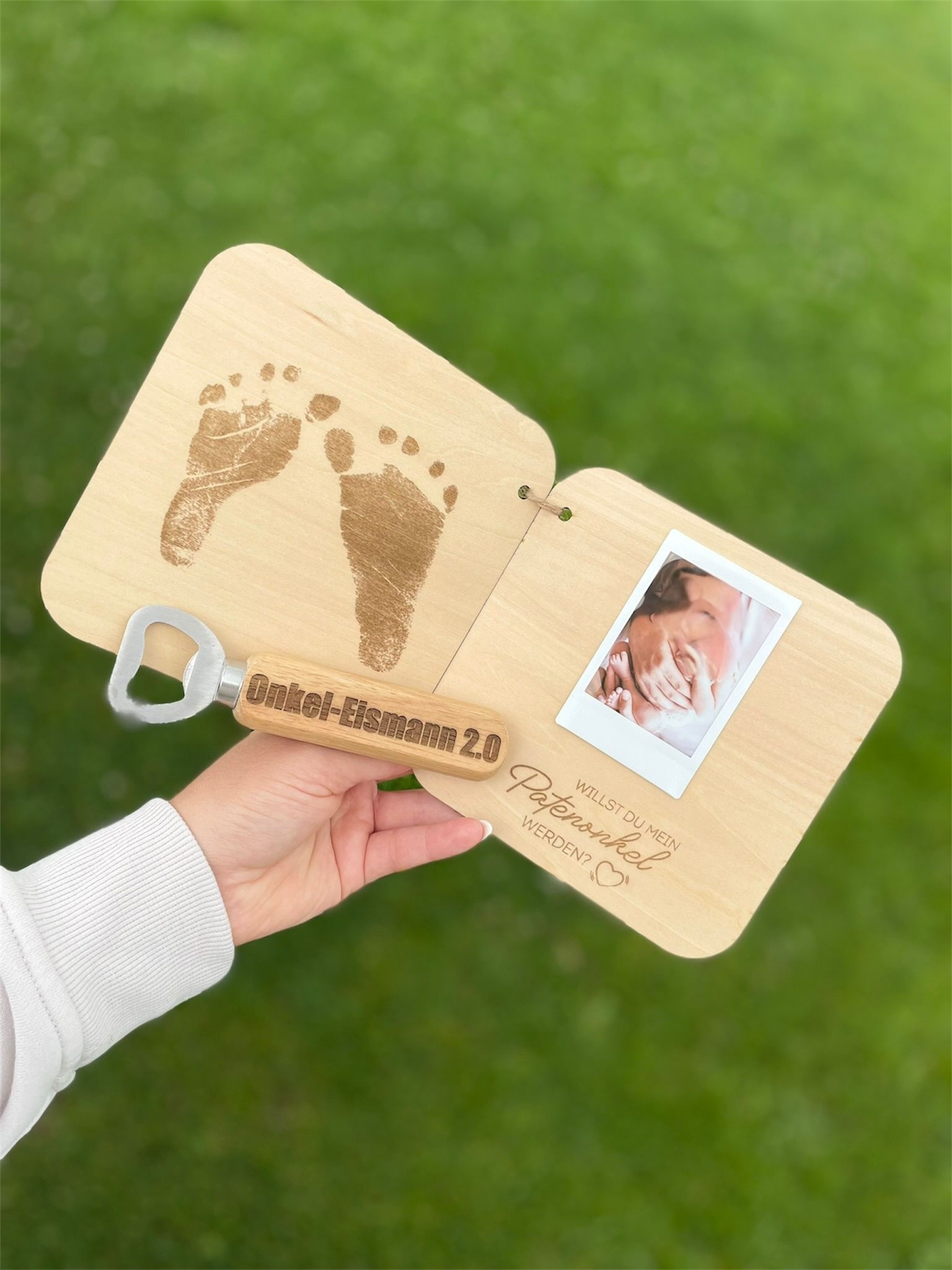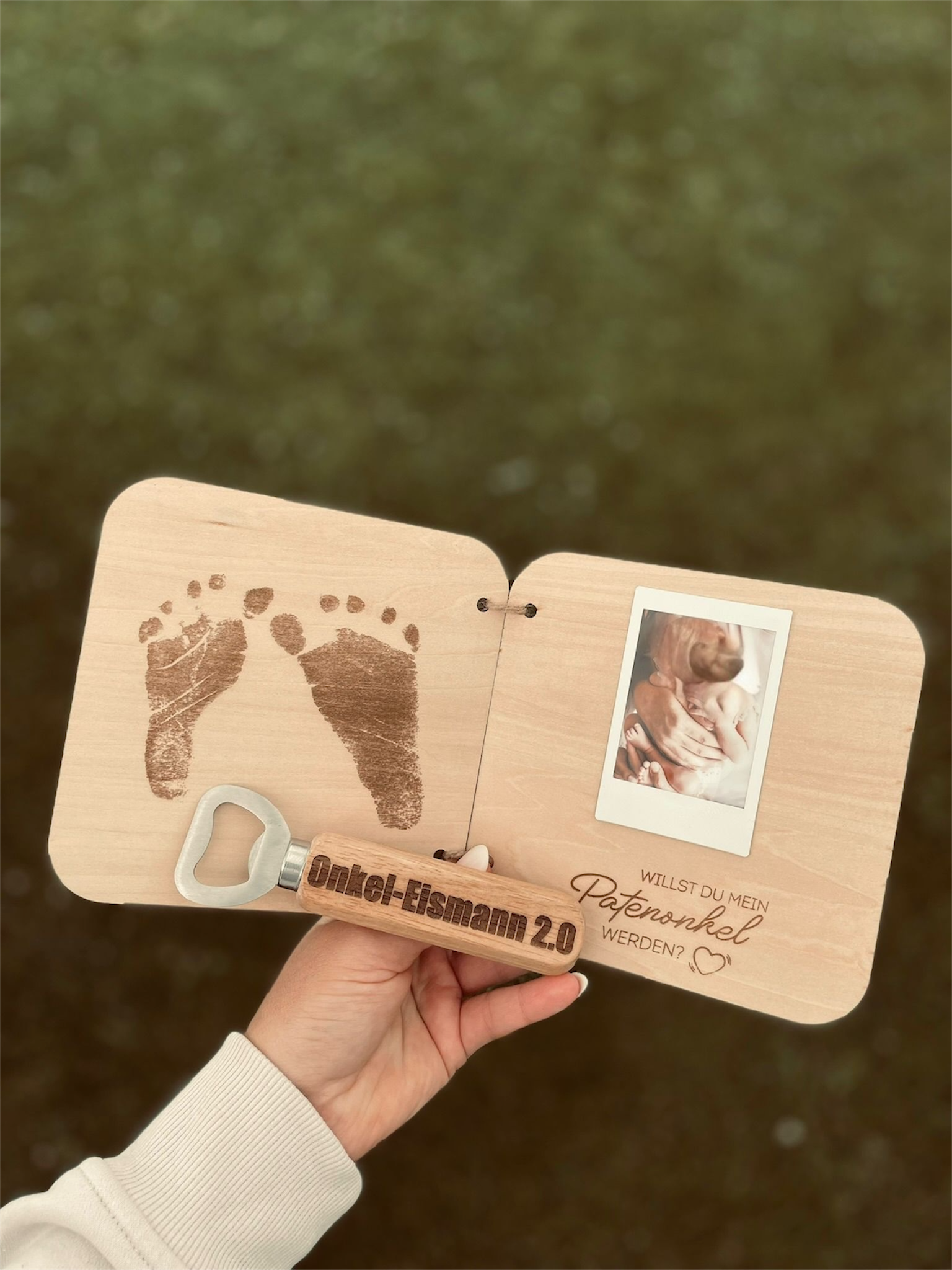 - Zusätzlich möglich: Gravur eines Textes, eines Hand- oder Fußabdrucks oder einer individuellen Datei deiner Wahl