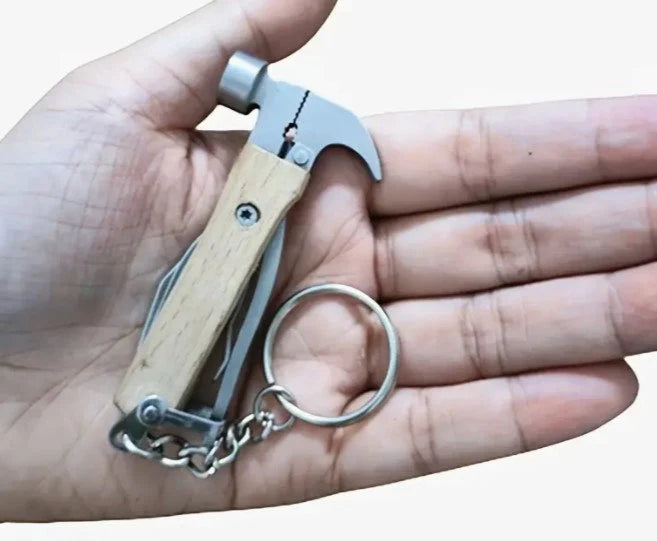 Entdecke den süßen und praktischen Mini-Multitool-Schlüsselanhänger aus Edelstahl und Holz. Dieser handliche Alleskönner vereint einen Hammer, ein Messer und ein taktisches Werkzeug in Einem. Der perfekte Begleiter für unterwegs und ein ideales Geschenk für jeden, der gerne vorbereitet ist. Personalisiere deinen Schlüsselanhänger mit einer individuellen Gravur und zeige allen deine stilvolle und praktische Seite. Ob beim Camping, Wandern oder einfach im Alltag - mit diesem Mini-Multitool-Schlüsselanhänger hast du immer das richtige Werkzeug griffbereit.