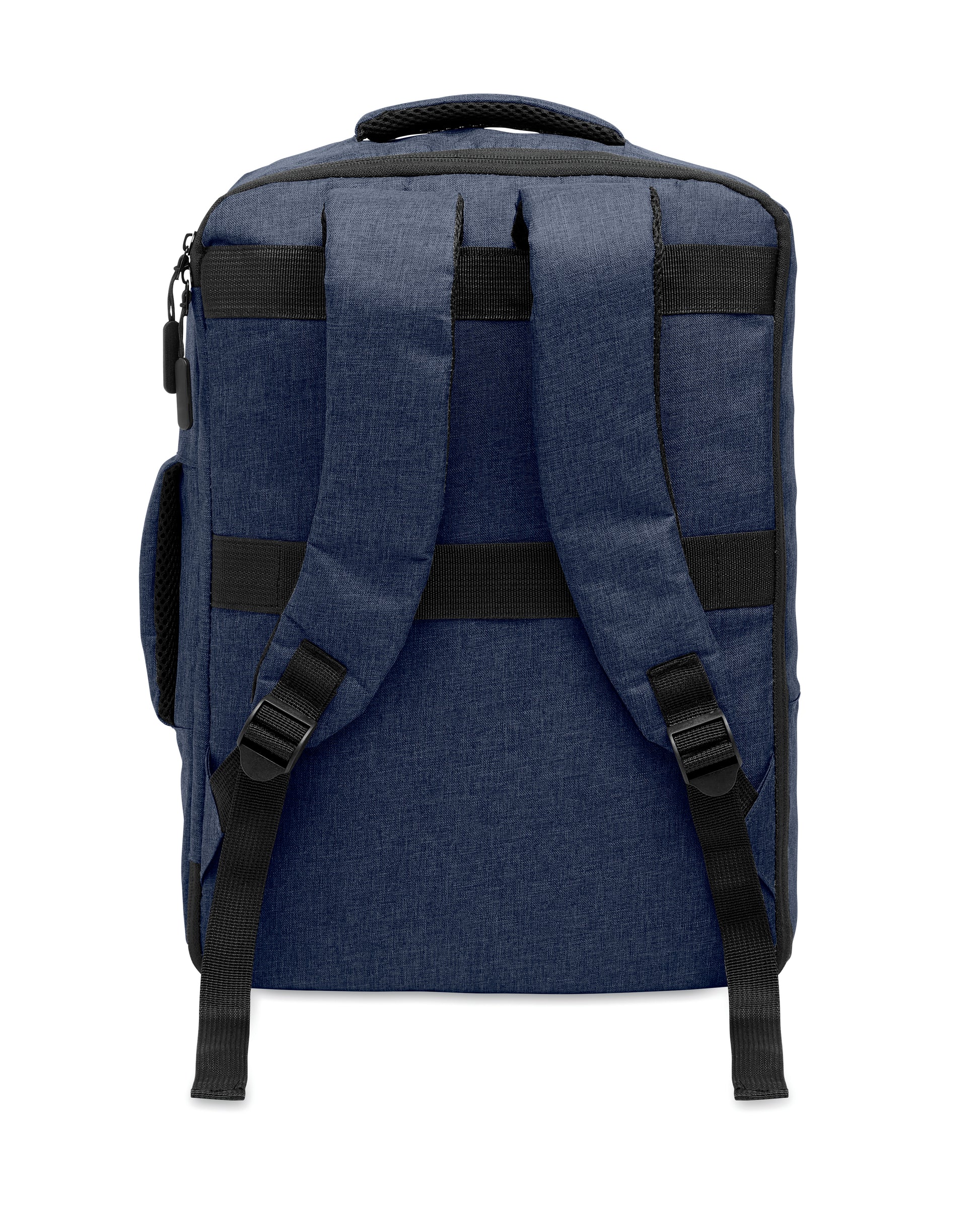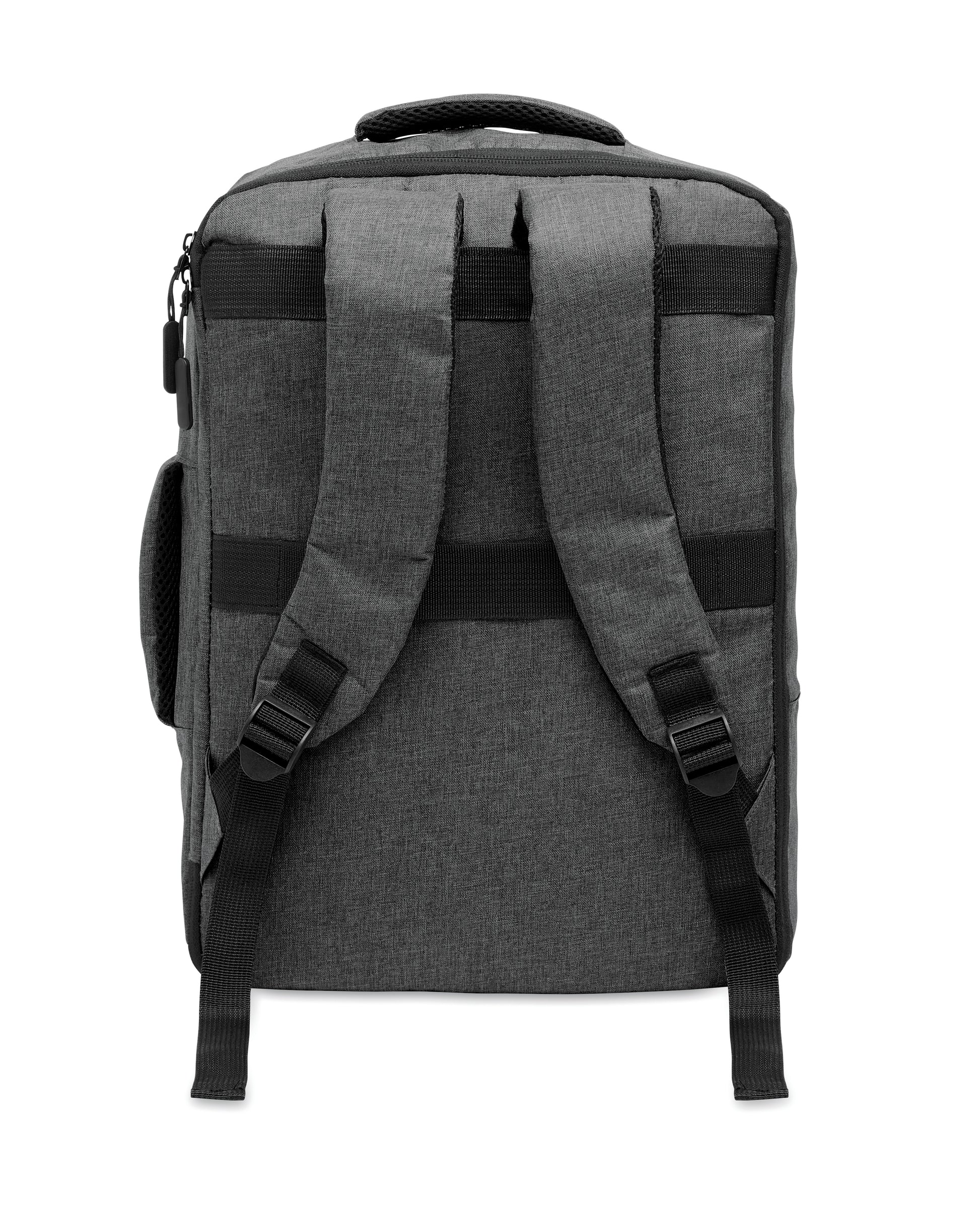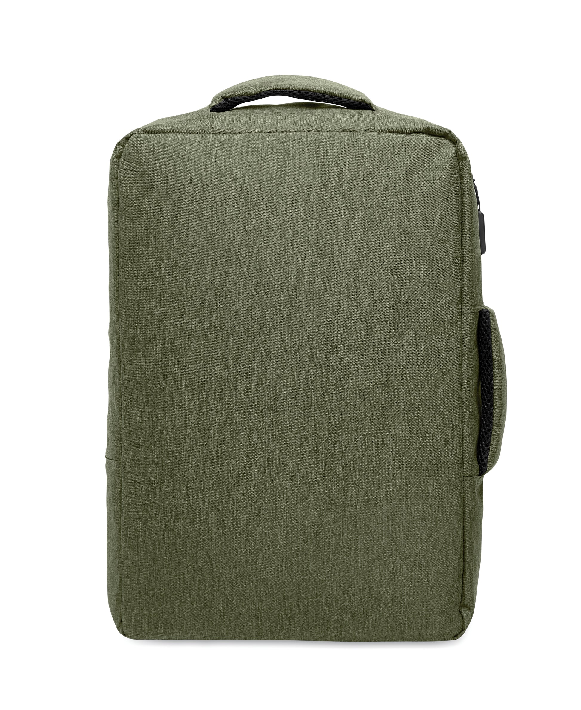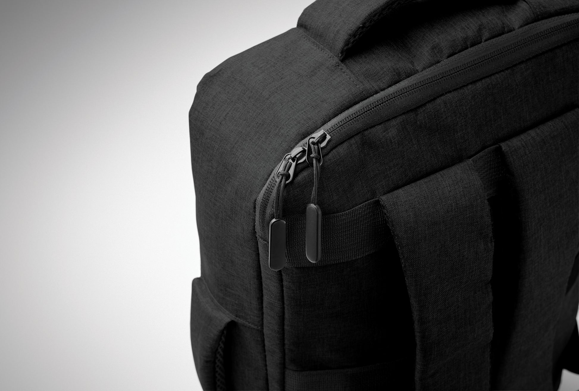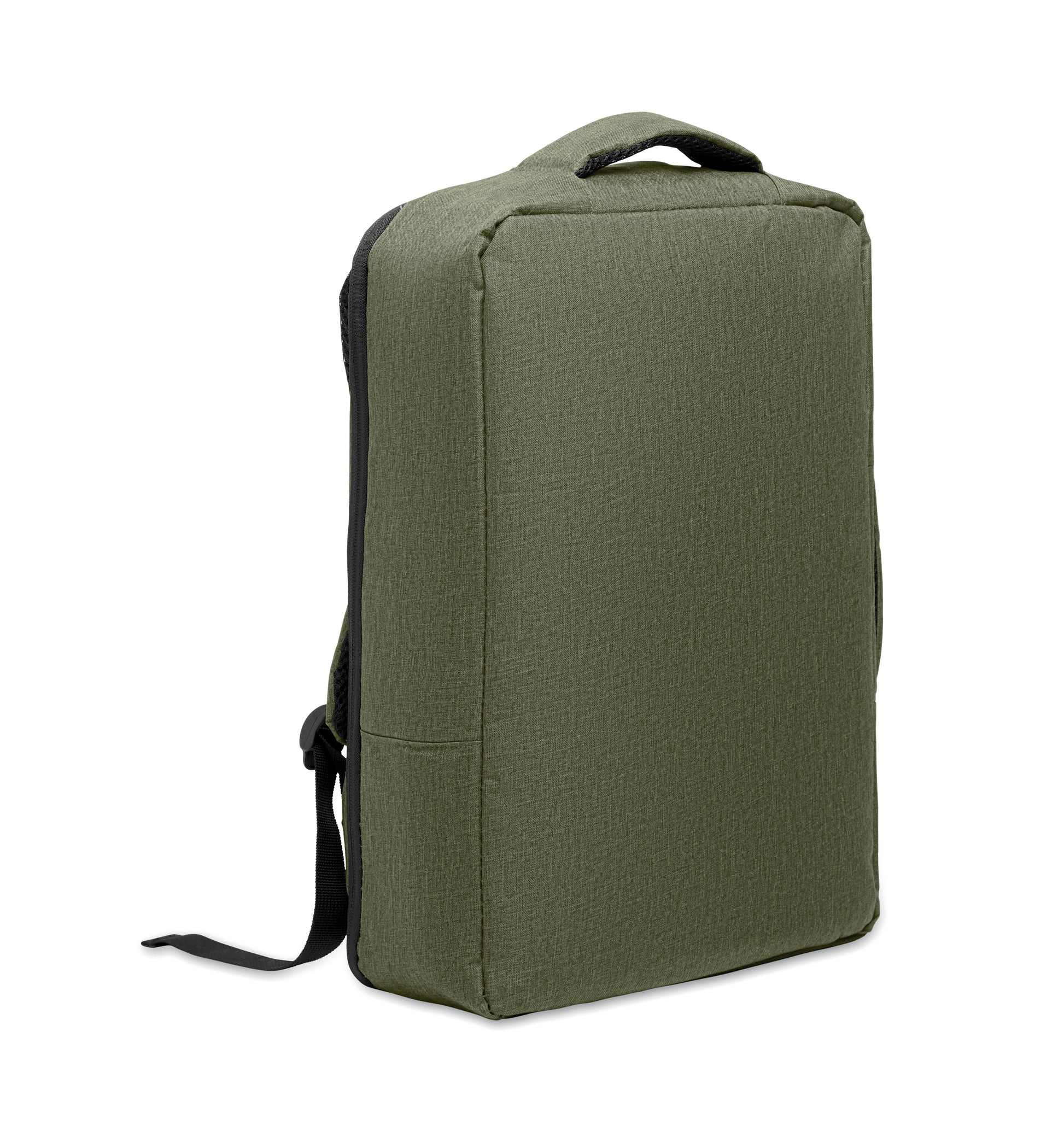 Schlanker 15'''' Laptop-Rucksack aus 300D RPET mit 210D RPET-Futter. Laptopfach, 2 Innentaschen, 2 Stiftfächer, gepolsterte Tragegriffen. Weich gepolsterte Rücken- und Schultergurte. Rückseitige Trolley-Halterung.