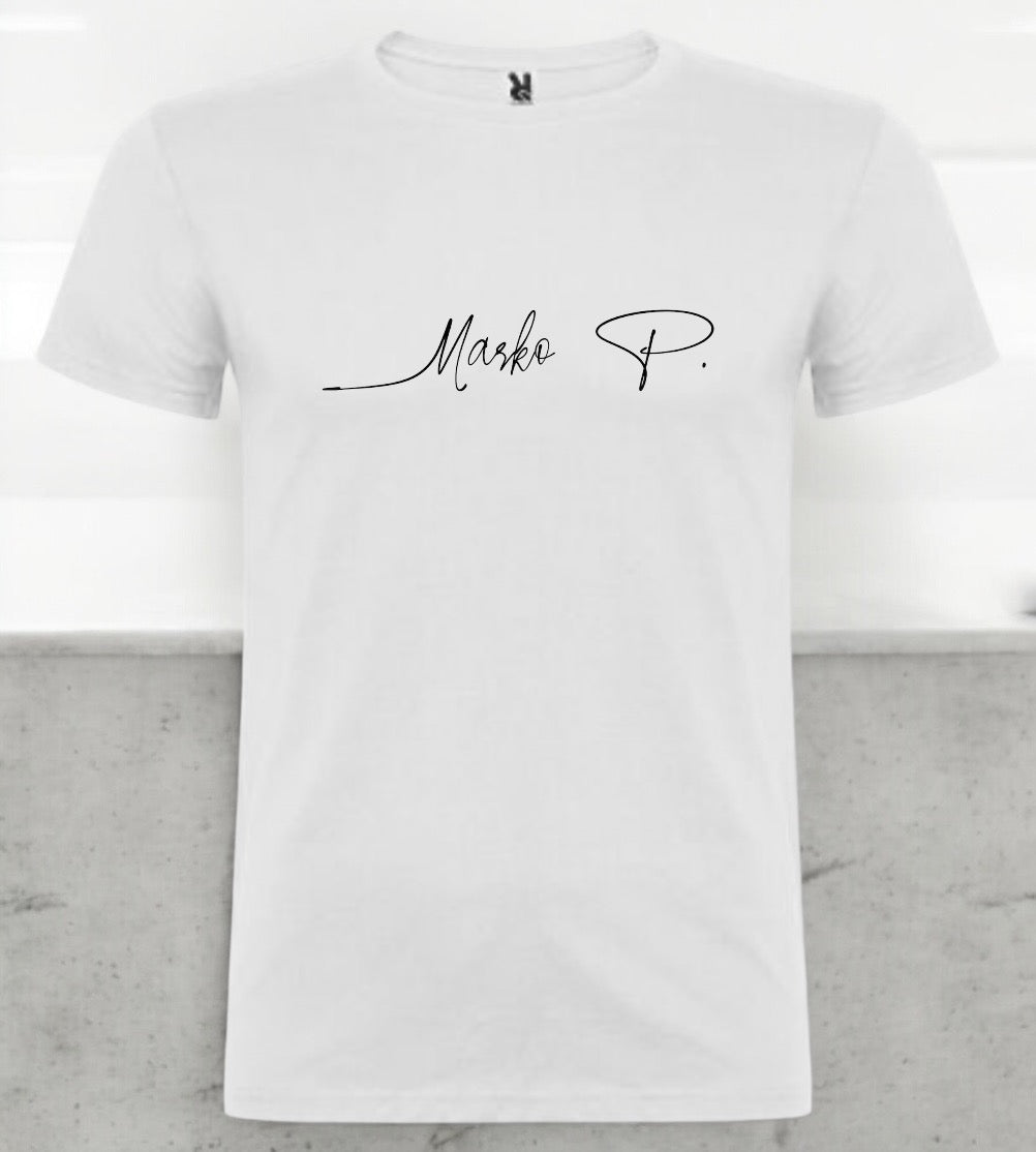 Vorderseite bedruckt mit dem Logo „Marko P.“.