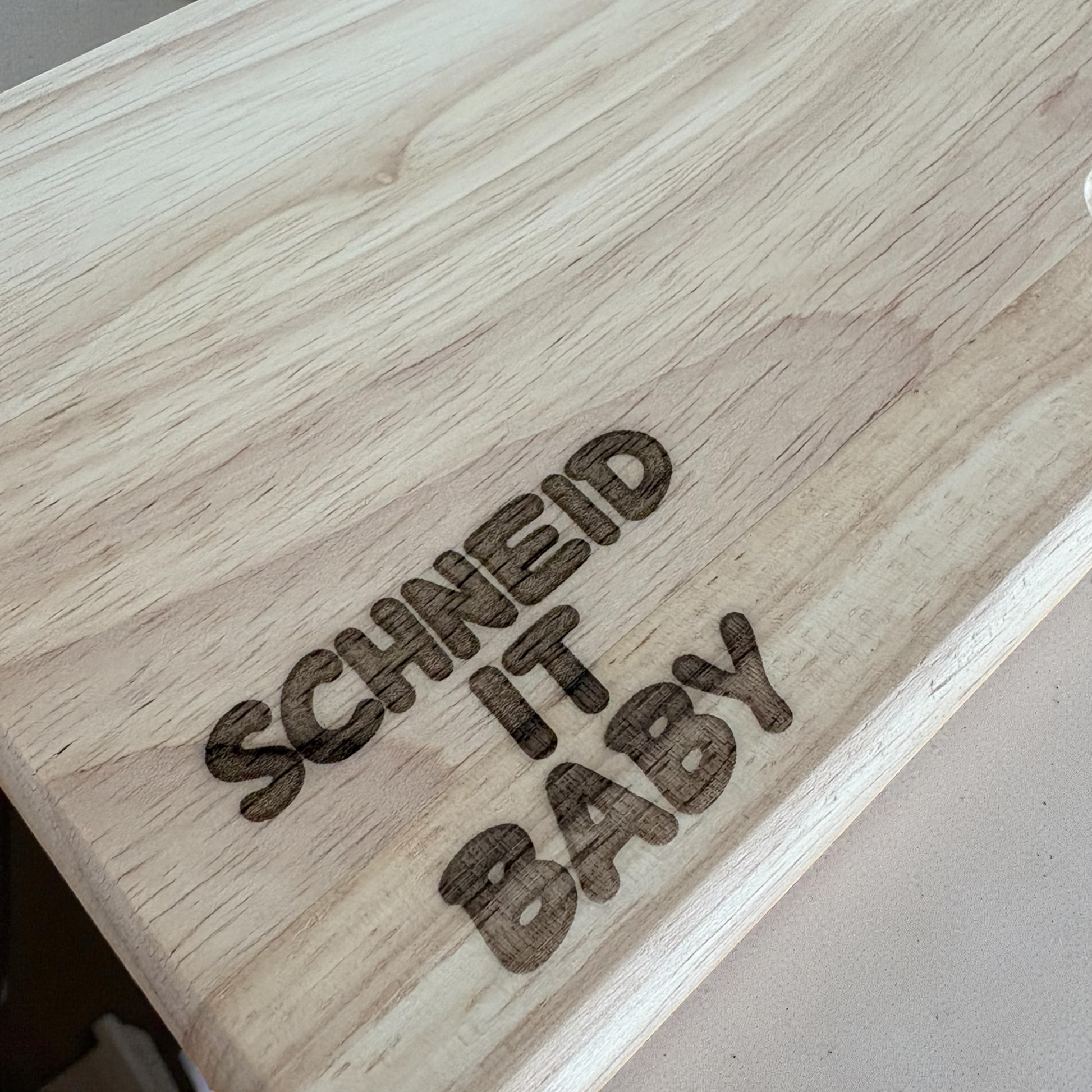 Die hochwertige Lasergravur „Schneid It Baby“ macht das Brett zu einem echten Hingucker. Robust, langlebig und aus edlem Holz gefertigt, ist es ideal als dekoratives Accessoire oder stylisches Geschenk für Fans.