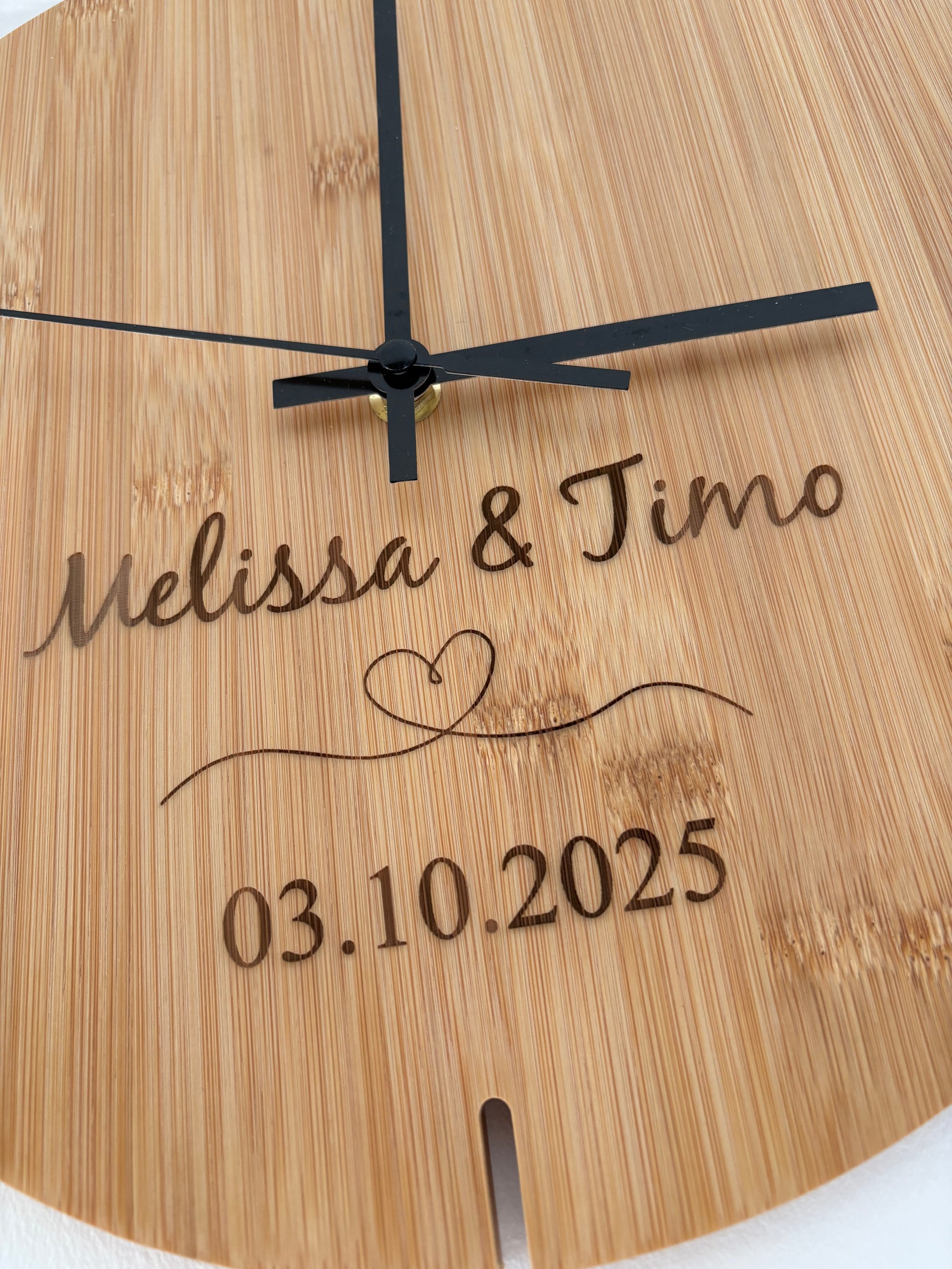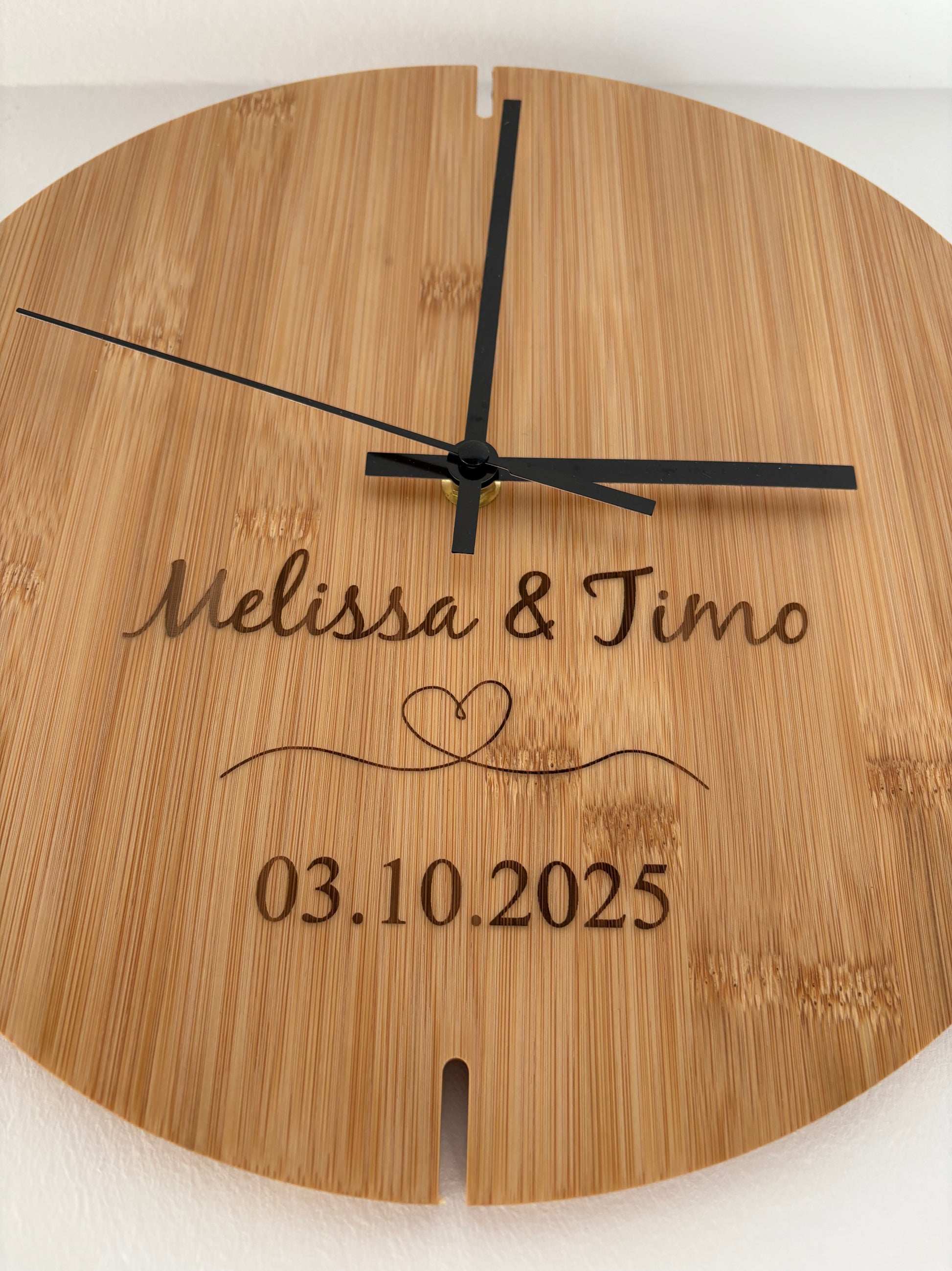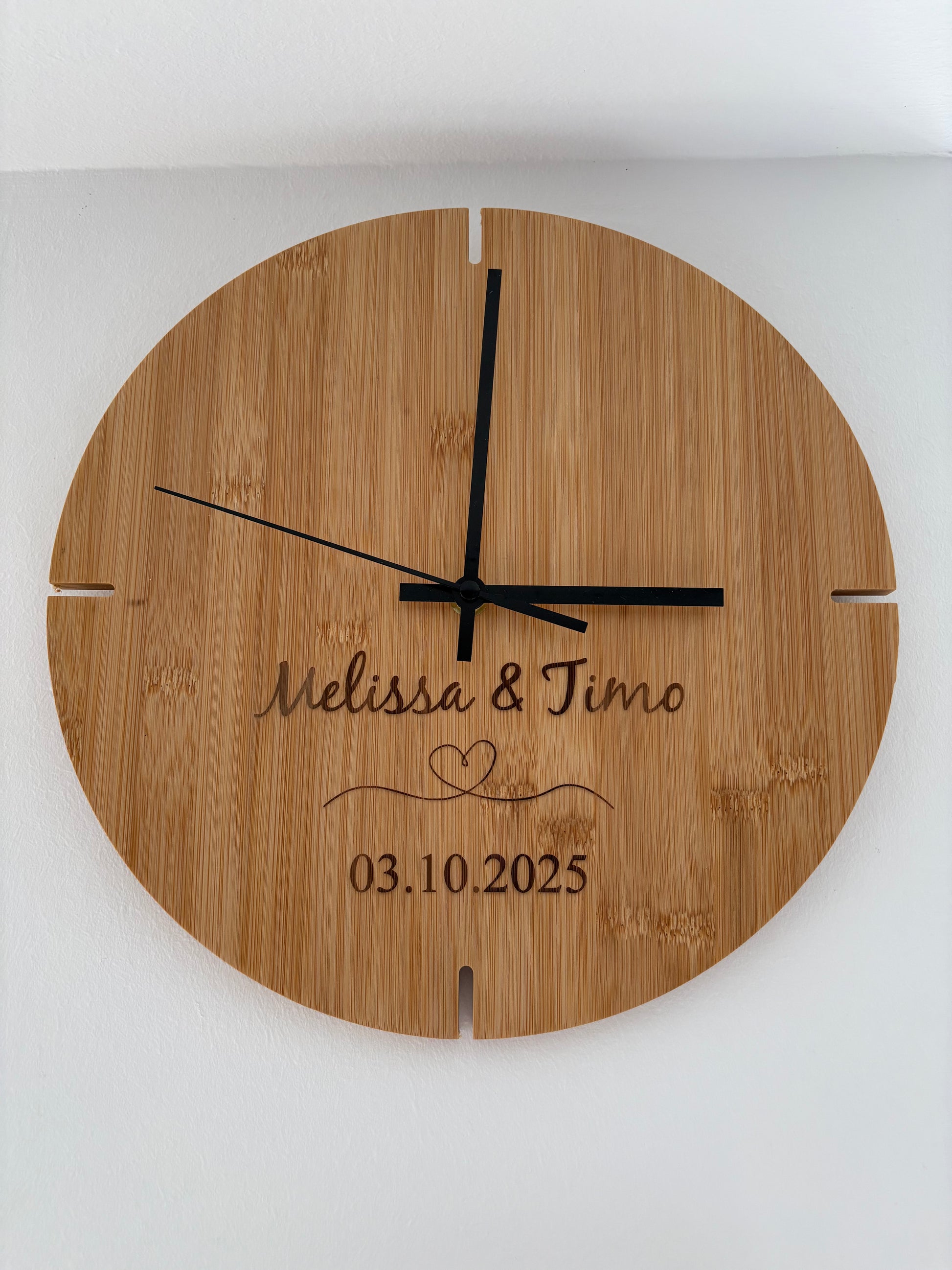 Diese Wanduhr aus echtem Bambus ist ein stilvoller und nachhaltiger Blickfang für jedes Zuhause oder Büro. Das natürliche Material sorgt für eine warme, moderne Optik – perfekt als Geschenkidee für Geburtstage, Hochzeiten, Jubiläen oder zur Firmeneinweihung.