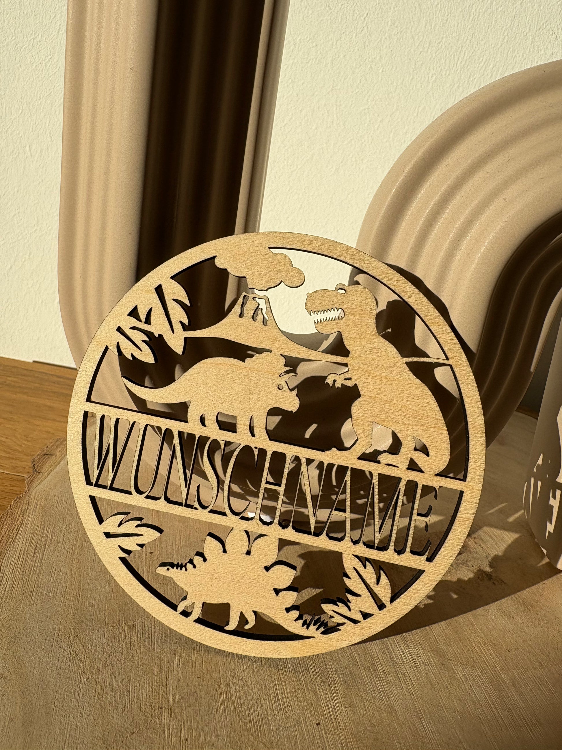 🌟 Personalisierbares Türschild aus Holz – Dino Design mit Wunschname
