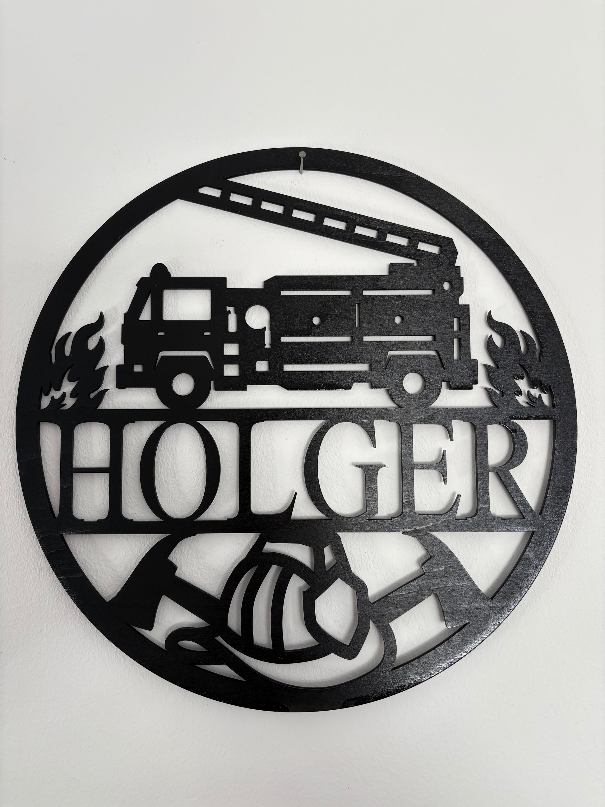 Personalisiertes Türschild aus Holz Feuerwehr mit Name