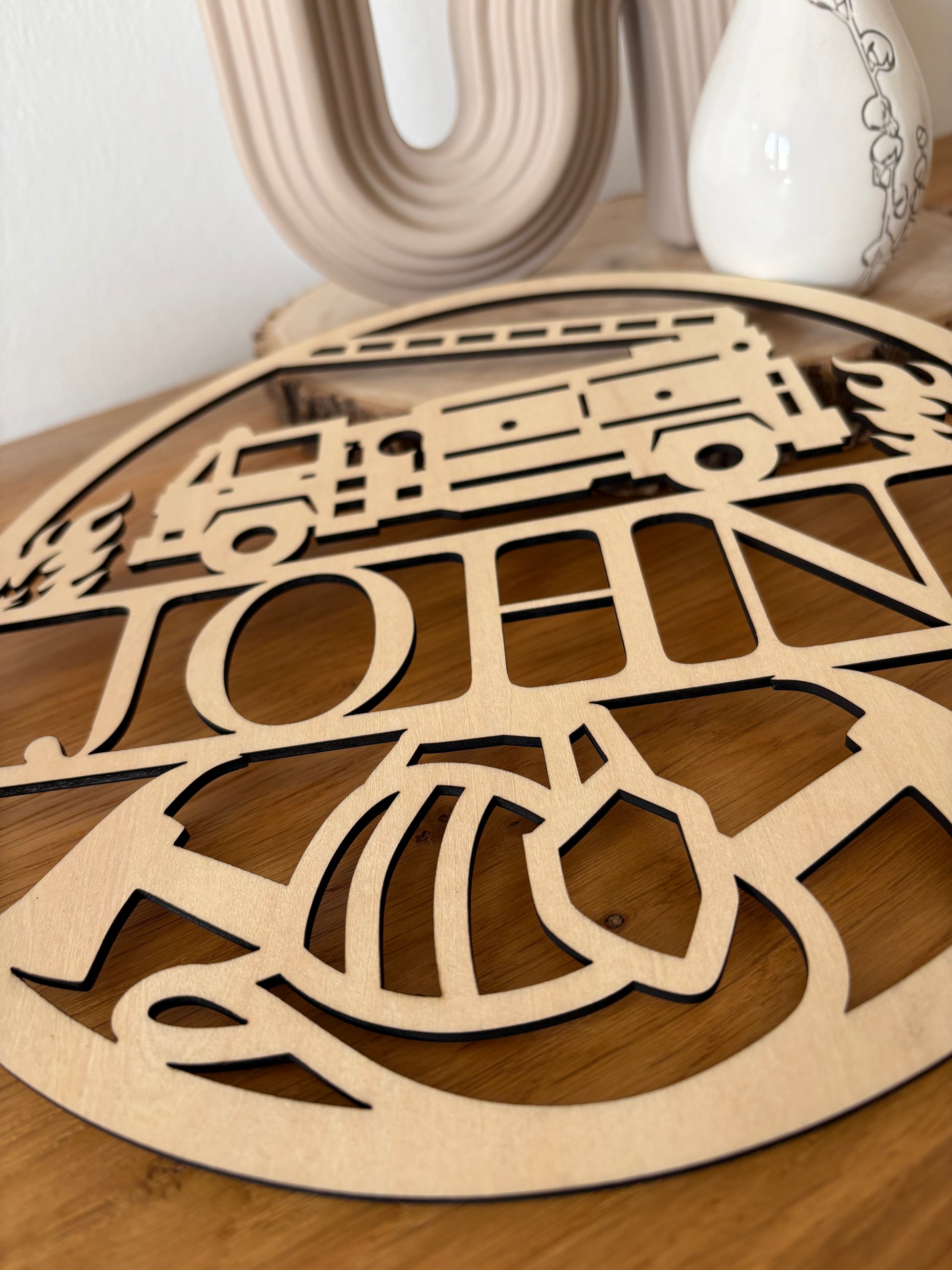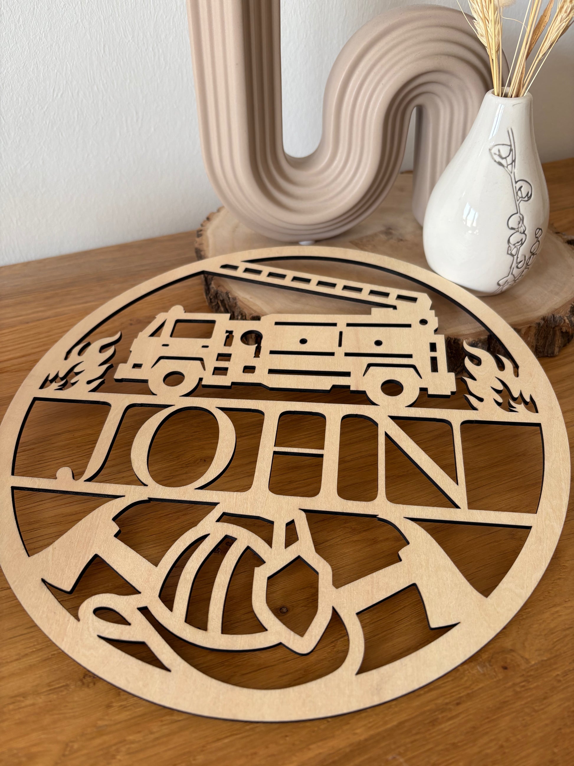 🌟 Personalisierbares Türschild aus Holz – Feuerwehr Design mit Wunschname